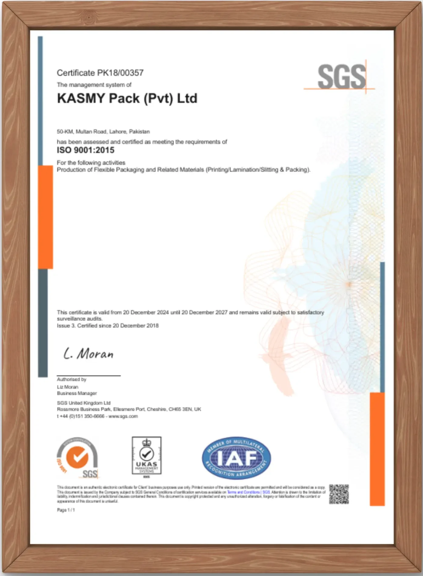 KASMY Lamination serves its customers with the latest solvent-less lamination allowing the package to have minimal solvent retention hence making your product life longer and safer.